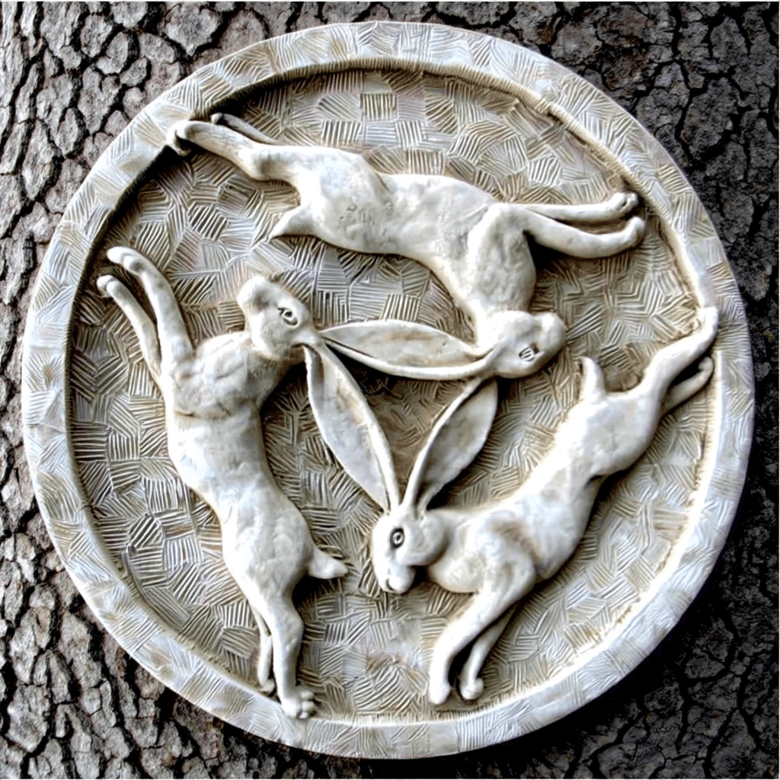 One unusual image sometimes connected with hares is the “three hares” design. It shows three animals chasing each other in a circle, sharing their ears so that only three ears are visible even though there are three hares.